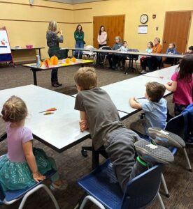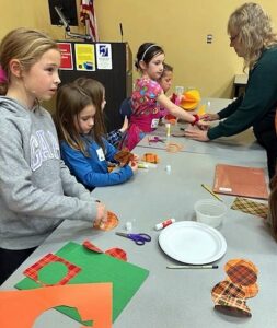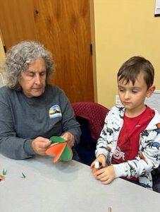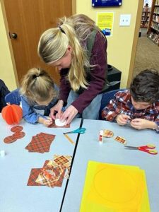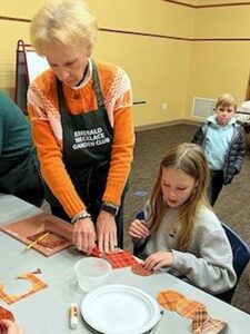 Emerald Necklace Garden Club hosted a workshop for elementary age children at the Brecksville Library on November 17, 2025. Children learned how to cut pumpkin shapes, paste layers together, fold the layers and then open layers to form a sculpture pumpkin. ENGC members and parents were on hand to assure everyone’s pumpkin was beautifully formed.